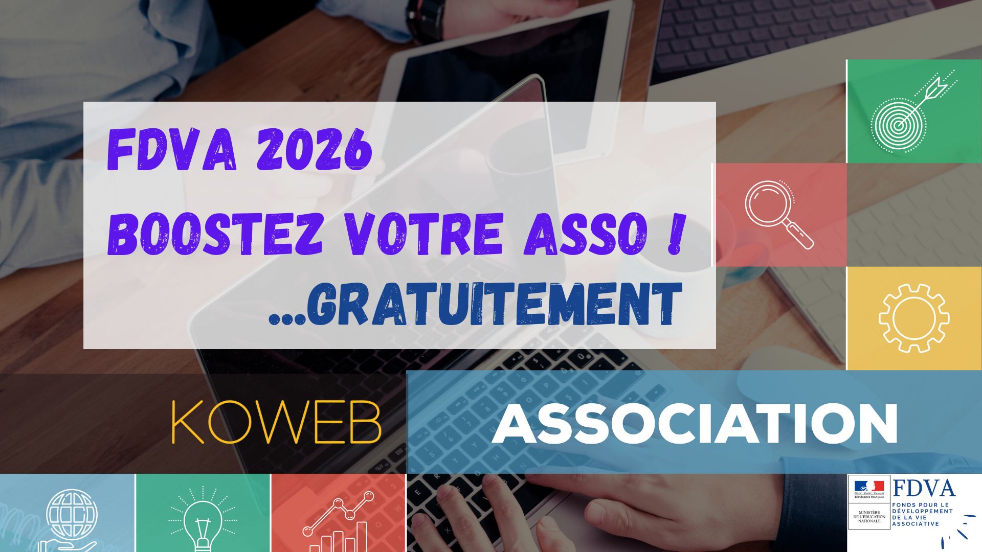 Les dépôts de dossier de financement, rapides et simples, suivent un calendrier propre à chaque région. Tout est expliqué dans notre article dédié. Comme vous l’avez découvert, nous venons aussi de lancer un catalogue d’ateliers finançables par le FDVA : Le geste numérique qui potentialise la collaboration : le nouveau catalogue d'ateliers Koweb.